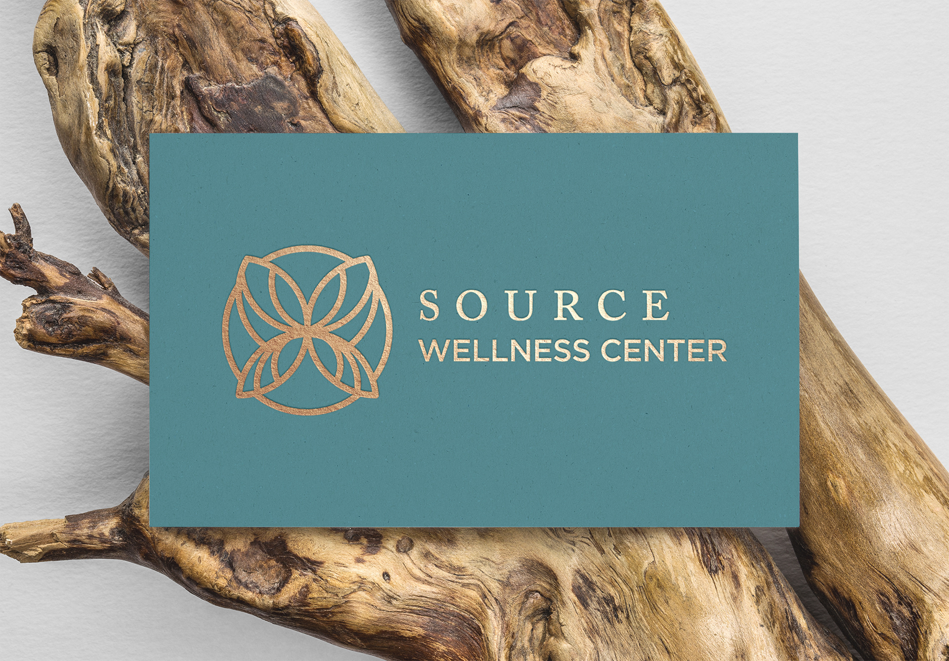Source is a spa and wellness center designed to give women a space to connect and rejuvenate. It's not only a sanctuary, but a community. The transformation and restoration women experience from visiting the center inspire the butterfly form that makes up the Source logo. The color palette represents the calm and meditative qualities that cascade throughout the space, and the delicate serifs of the main word mark are subtle enough to let the main mark shine through.